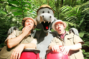 Aarne Alligaattori & Viidakkorumpu - bändissä esiintyy ihastuttavan ja hauskan Aarnen lisäksi kaksi safariasuista kaveria, Tomas Nyberg ja Macke Granberg. Heidän lastenlevy on soinut radiossa tiheään, ja Alligaattori valloittaa lapset ja aikuisetkin menevällä musiikillaan. Aarne keksii kepposia ja soittaa viidakkorumpuja. Esitys myös ruotsiksi.