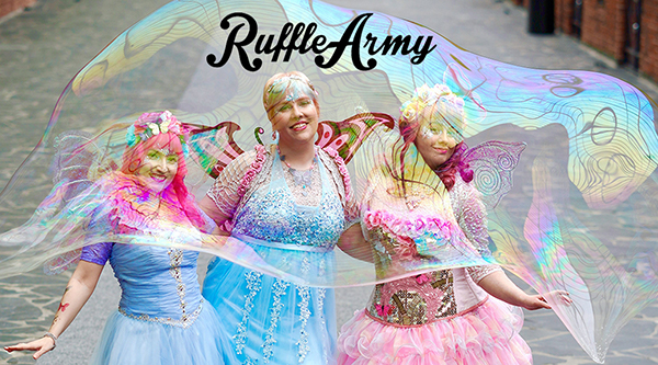 Jättisaippuakuplapoppoo taikoo iloa levittävissä esityksissään monimetrisiä, kauniita jättisaippuakuplia lasten ja aikuistenkin iloksi. Lapset ovat hulluina kupliin ja haluavat rikkoa ne kaikki. Aikuiset taas haluavat ikuistaa kuplat valokuviin. Jättikuplat tarjoavat ihanan hetken satumaailmassa. Ruffle Armyn teemoja ovat muun muassa keijut, pellet, prinsessat ja kimmeltävä 20-luku. Useimmiten heidät nähdään vintagehenkisissä pallomekoissa. "Röyhelöiset" tekevät kaikki erilaisia ja erikokoisia kuplia uniikeilla kuplavälineillään. Ruffle Army pitää esitysten lisäksi myös supersuosittuja jättisaippuakuplatyöpajoja, joissa osallistujat pääsevät kokeilemaan kuplien taikomista itse. Kuplailu on helppoa ja hauskaa puuhaa. Kuplailemisiin!